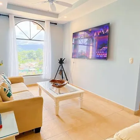 The 3-room Stylish 3-Br Vacation Condo With Scenic Rooftop Jaco includes a terrace and is located approximately a 20-minute walk from the Jaco Beach. Set right near the Jaco Library and Learning Center, this beachfront apartment comes with a swimming pool, a Jacuzzi.